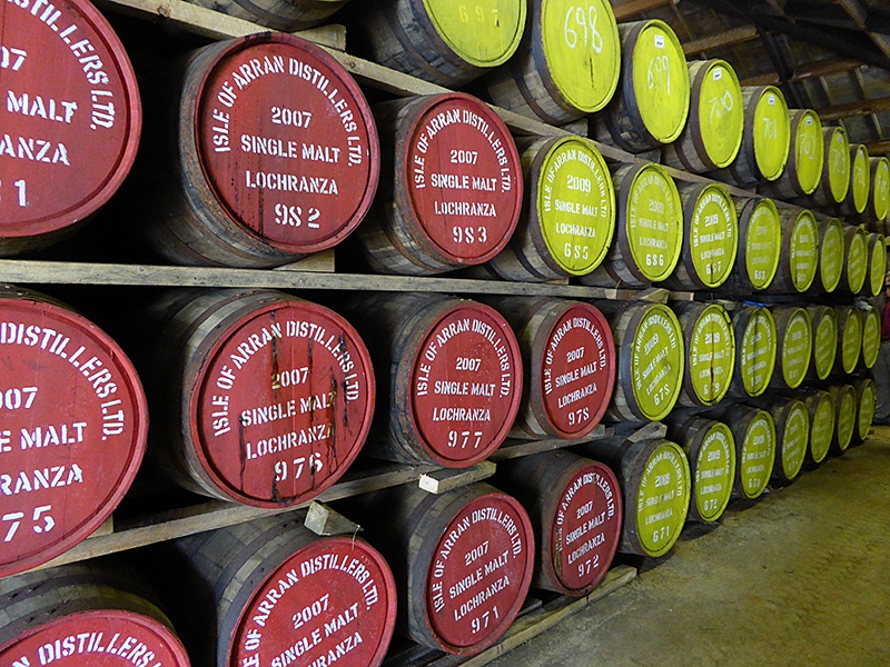 Après la visite, vous pouvez retourner à Glasgow ou passer la nuit à proximité. Le lendemain matin, en fonction du lieu où vous avez passé la nuit, vous mettez de 45 à 90 minutes en voiture pour rejoindre Ardrossan. Là-bas, vous prenez le ferry pour Brodick, sur l’île d’Arran. Vous profitez de la traversé en prenant un petit-déjeuner écossais, appréciez la fraîcheur de la brise et vous laissez envoûter par cette traversée au romantisme sauvage. Une fois arrivé à Arran, différentes possibilités s’offrent à vous. L’île est considérée comme la «Little Scotland» et vous pouvez confortablement en faire le tour en 2 heures environ. Sur la route côtière orientale, vous irez de Brodick à Lochranza. Vous découvrirez une nature intacte et riche jusqu’à Lochranza, avant d’apercevoir la distillerie de l’île d’Arran: un paysage spectaculaire. La distillerie fondée en 1995 est neuve et moderne, on y travaille néanmoins de manière traditionnelle. Les whiskys d’Arran ont en commun leur fraîcheur et leur fruité, des arômes de pomme et de poire associés à des fruits exotiques et de la vanille fine en arrière-plan.