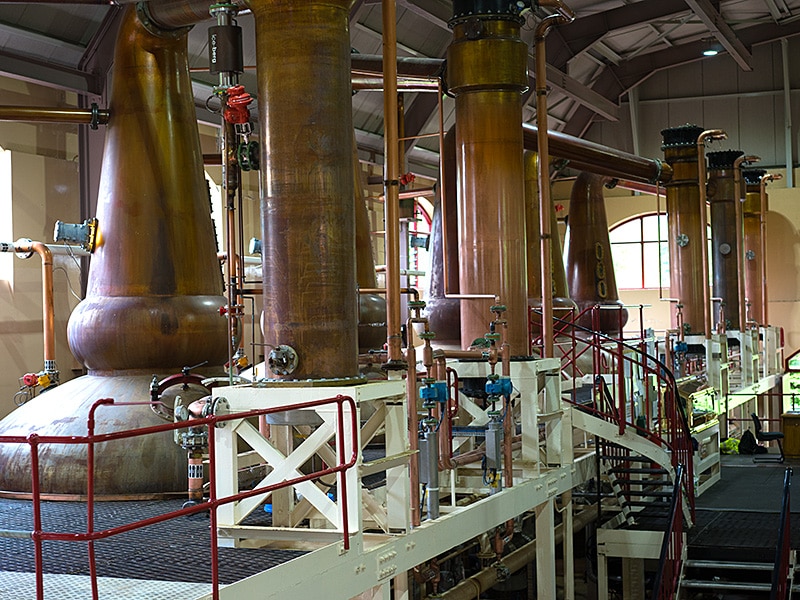 Prenez confortablement l’avion depuis Zurich ou Genève jusqu’à Glasgow. Un merveilleux paysage écossais commence à apparaître quelques kilomètres après Glasgow, une ville industrielle. Au cours de votre trajet de 40 minutes vers Dumgoyne, vous verrez des villages endormis, des églises ainsi que des moutons présents en grand nombre dans les champs. Puis, vous visiterez la distillerie Glengoyne. De nombreuses personnes affirment qu’il s’agit d’une des plus belles distilleries d’Écosse. On distille ici depuis 1883 dans la vallée des oies sauvages. La brasserie se situe au bord d’une route très fréquentée, avec une cascade romantique en arrière-plan. Un bâtiment simple, parfaitement blanchi à la chaux. À l’intérieur, on prend le temps de distiller comme dans peu d’autres brasseries écossaises. On utilise exclusivement du malt non tourbé (fabriqué avec de l’orge Golden promise, à partir duquel le whisky Macallan est uniquement produit). Le whisky mûrit principalement dans d’anciens fûts de sherry en chênes européens et américains. La route (West Highland Way) passant devant la brasserie sépare le bâtiment de production des entrepôts et constitue en même temps la frontière entre Highlands et Lowlands. Les whiskys de Glengoyne sont légèrement sucrés, toujours non fumés et non tourbés, et se distinguent par leurs notes fines de pomme et de beurre ainsi que par leurs arômes épicés de Christmas pudding.